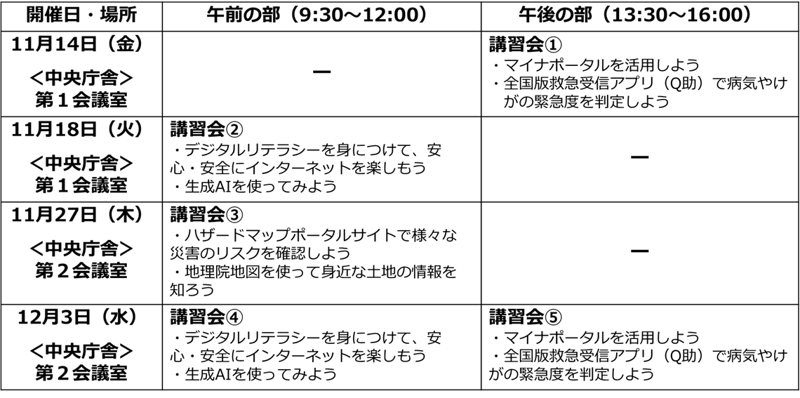 ※講習会⓵、⓹を受講される方はマイナンバーカードをご持参ください。